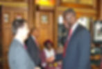 The late Rhyan Wilson presents a Youth Charter scroll to England and MCFC soccer star Shaun Wright-Phillips